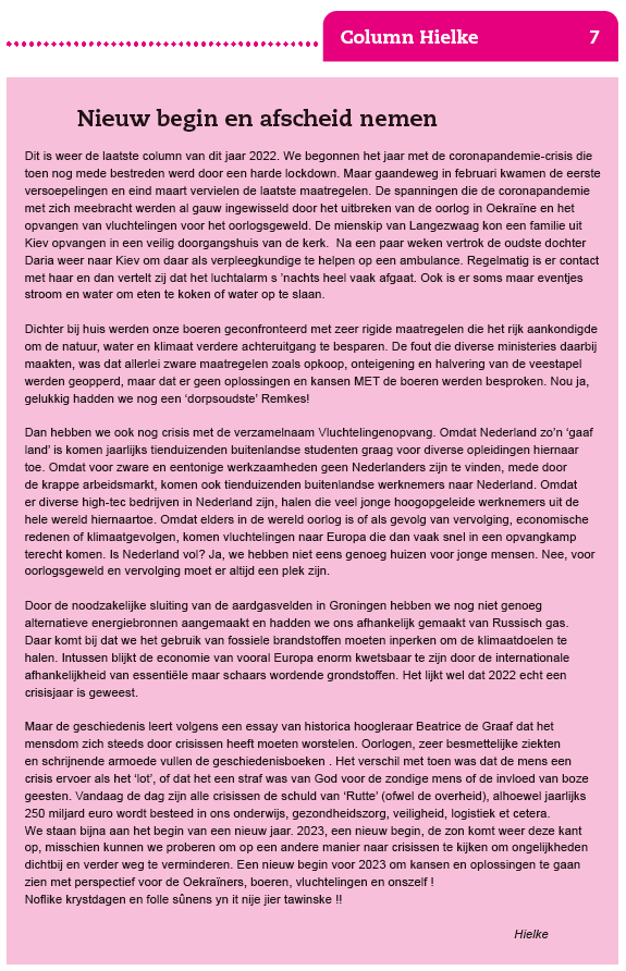 Column Hielke – 2022 – Nieuw begin en afscheid nemen