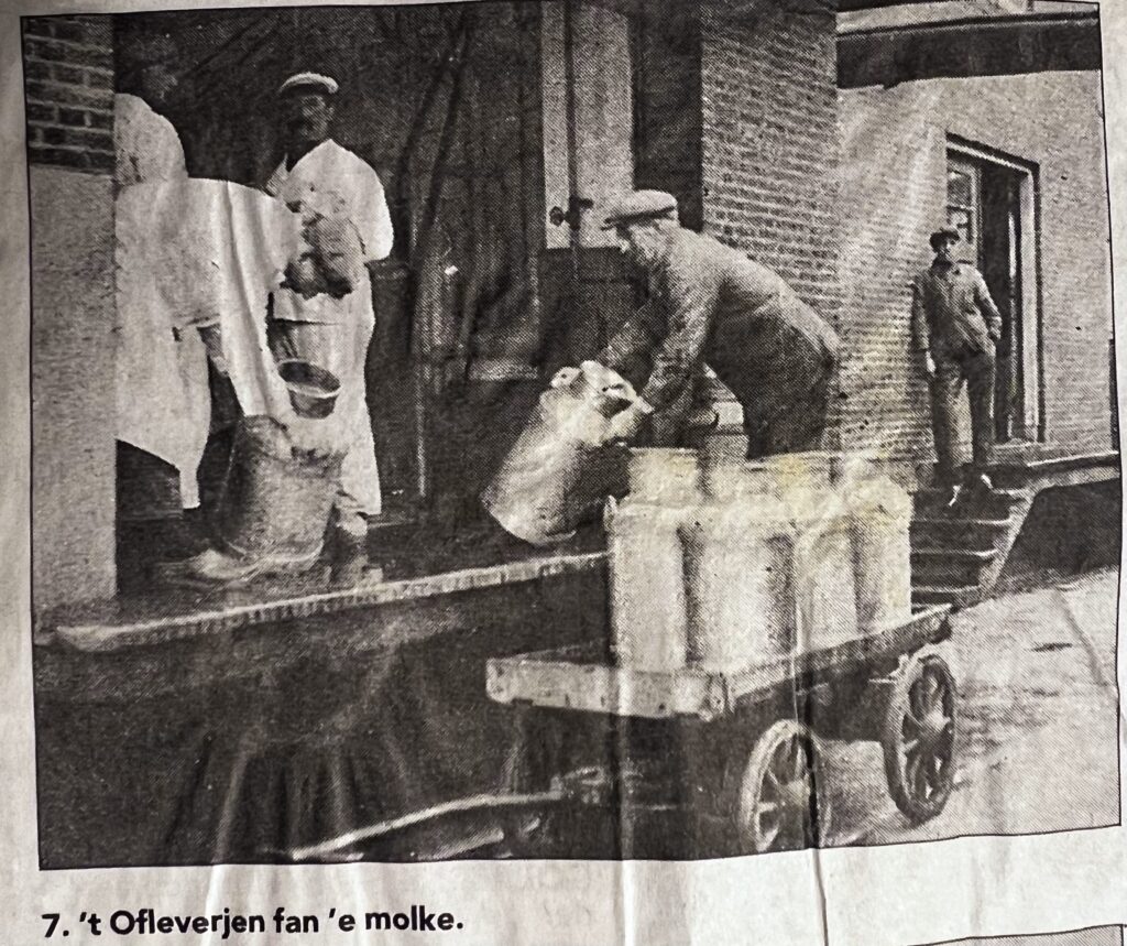 Het vervoer van melkbussen was zwaar werk omdat in het begin van het ontstaan van gezamenlijke melkverwerking er nog weinig verharde wegen waren. De boerderijen, veelal ook hele kleine van 3 á 4 koeien tot grote van 25 á 30 koeien, lagen erg verspreid aan voetpaden, wijken en vaarten. Met een juk of kruiwagen werden de melkbussen naar een pad gebracht waar een melkrijder de melkbussen van diverse boeren op een route verzamelde, alvorens ze naar de zuivelfabriek te brengen. Maar ook door het grote netwerk van wijken en vaarten werden veel melkbussen in kleine pramen van het stap van de boerderij naar de fabriek gevaren. Alle zuivelfabrieken werden indertijd aan grote vaarten gebouwd. Zo ook de zuivelfabriek in Langezwaag op de Hegedyk waar de Nieuwe Vaart tot de Hegedyk doorliep. Vooral in de wintermaanden was het vervoer van melkbussen erg zwaar door moeilijk begaanbare paden en ijsgang. De kleine pramen moesten met een lange vaarboom worden voortgeduwd en soms liep er iemand op de wal in de tuig (beage) en een lang touw om de praam te trekken. Als het winter was met veel ijs, werden de melkbussen op een slee naar de fabriek vervoerd. Toen onder andere in 1916 de Boerestreek werd aangelegd, werden ook de grotere boerderijen in de loop der jaren aan verharde wegen herbouwd of nog later door de ruilverkaveling ontsloten. Dat de paden en later de wegen intensief werden gebruikt voor melktransport, werd nog eens versterkt doordat er verschillende coöperatieve zuivelfabrieken waren in Jubbega, Bontebok, De Knijpe, Tijnje en Terwispel. Bovendien waren er boeren die niks met het coöperatieve gedachtegoed hadden en de melk principieel naar een particuliere zuivelfabriek leverden. De Leijmpf (Leeuwarder IJs En Melk Producten Fabriek) was zo’n fabriek die later op is gegaan in Nutricia (Danone) en nu Ausnutria.